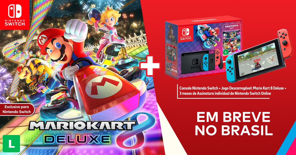 Por falar nisso, o bundle do modelo padrão do Nintendo Switch com a versão digital do jogo Mario Kart 8 Deluxe e três meses de assinatura individual do Nintendo Switch Online – que pode ser encontrado em lojas nacionais desde o ano passado – agora terá uma nova embalagem!